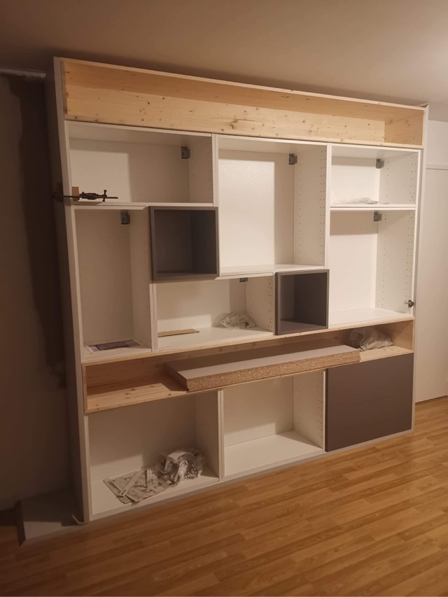 Les images de cette phase illustrent la transformation progressive de l’espace, la mise en place du mobilier et l’ajustement des éléments afin d’aboutir à un séjour fonctionnel et équilibré.