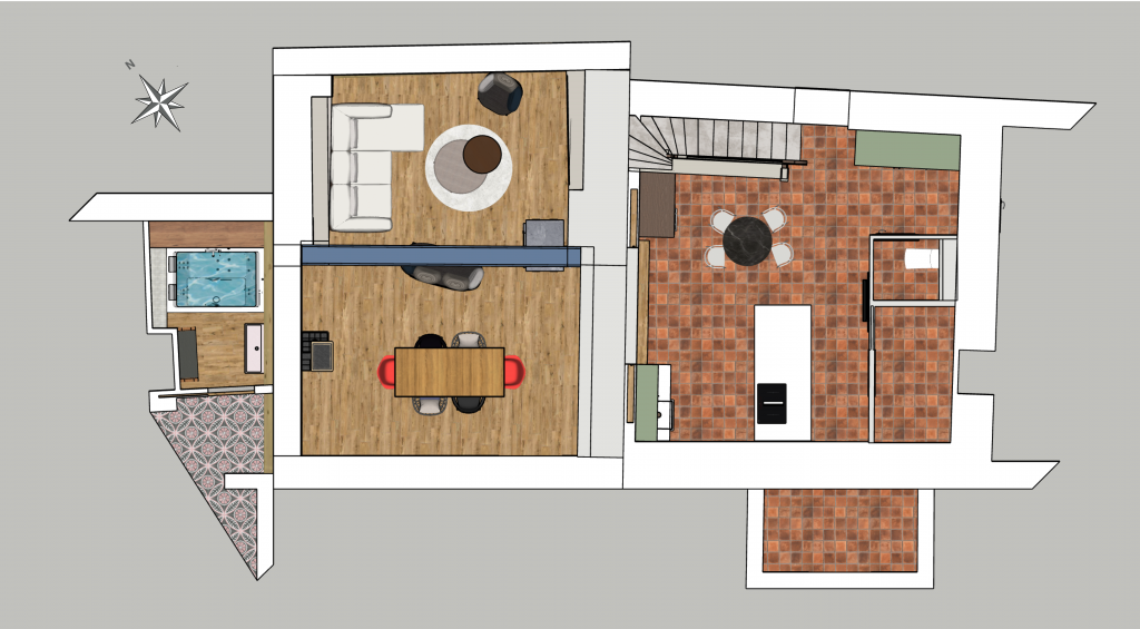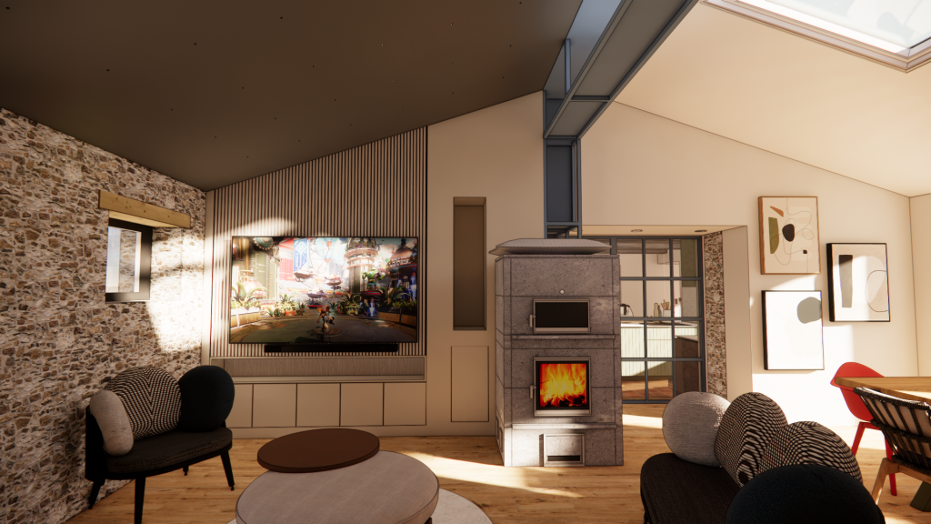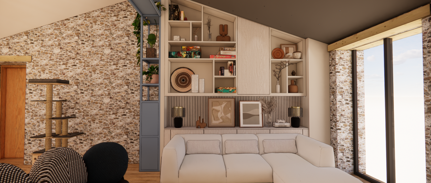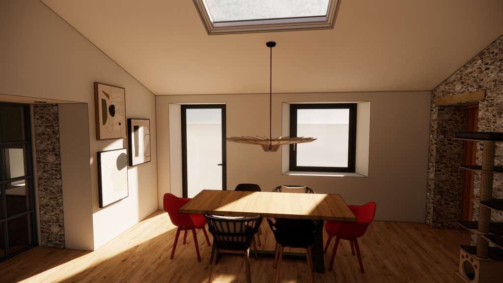 Ce projet constitue une étude complète de conception intérieure appliquée à une maison ancienne en pierre du début du XIXe siècle, récemment rénovée et agrandie.