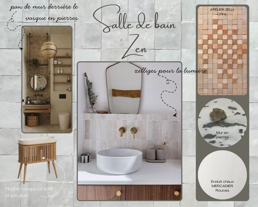 La salle de bain développe une ambiance enveloppante et minimaliste, centrée sur la détente.
