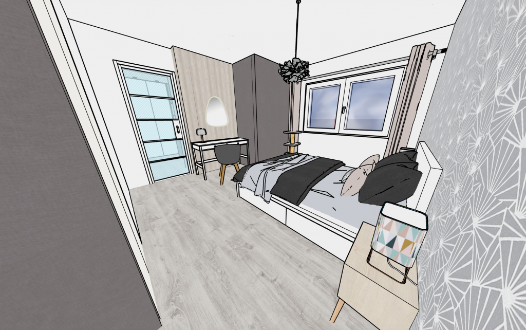 - création d’un espace de chambre spacieux avec séparation visuelle