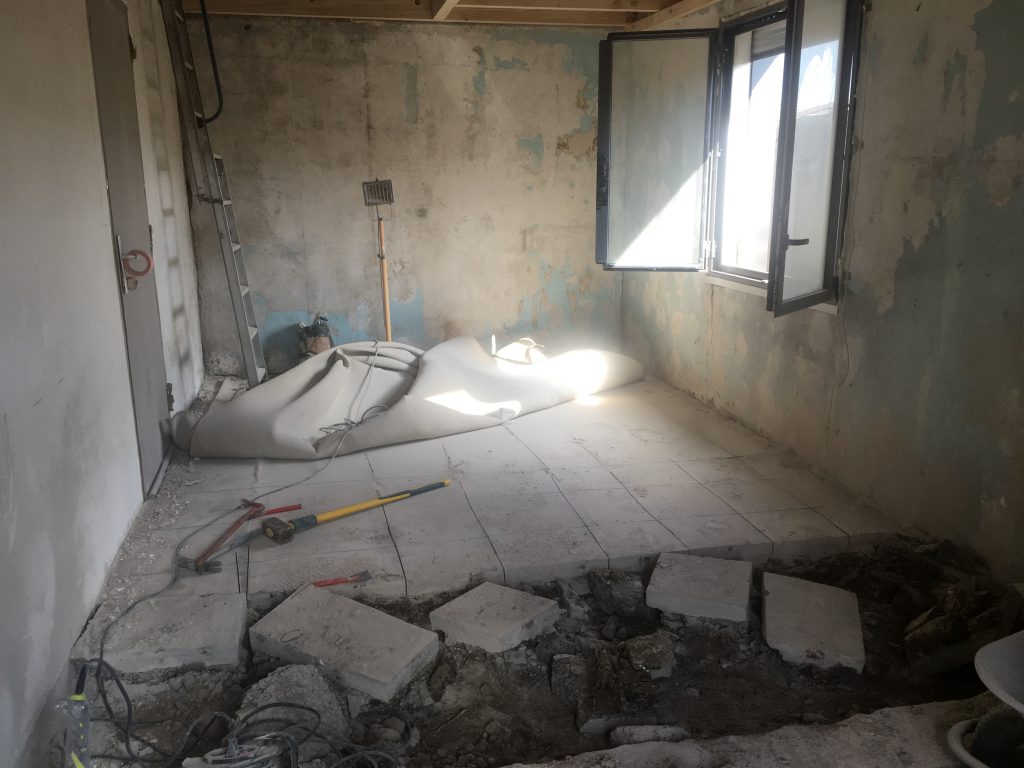 • Suppression de l’ancienne dalle, pour couler une dalle plus épaisse et isolée