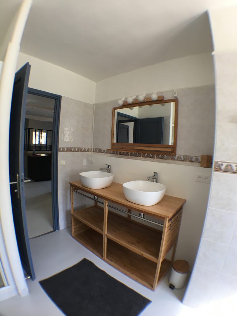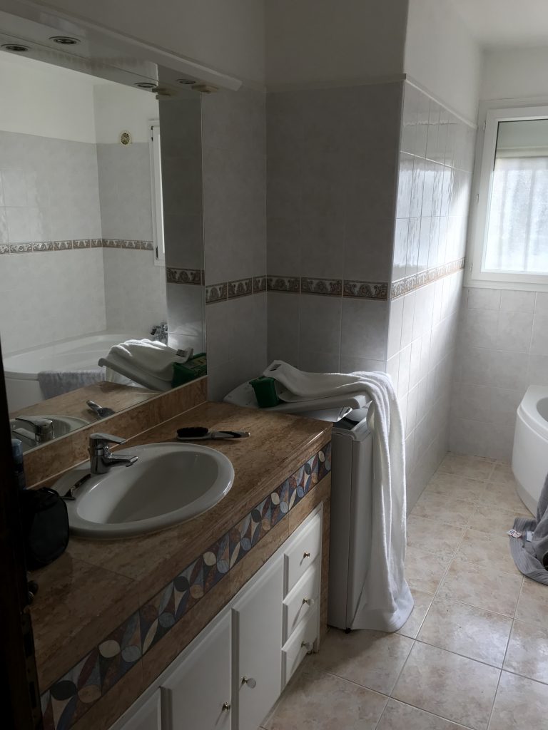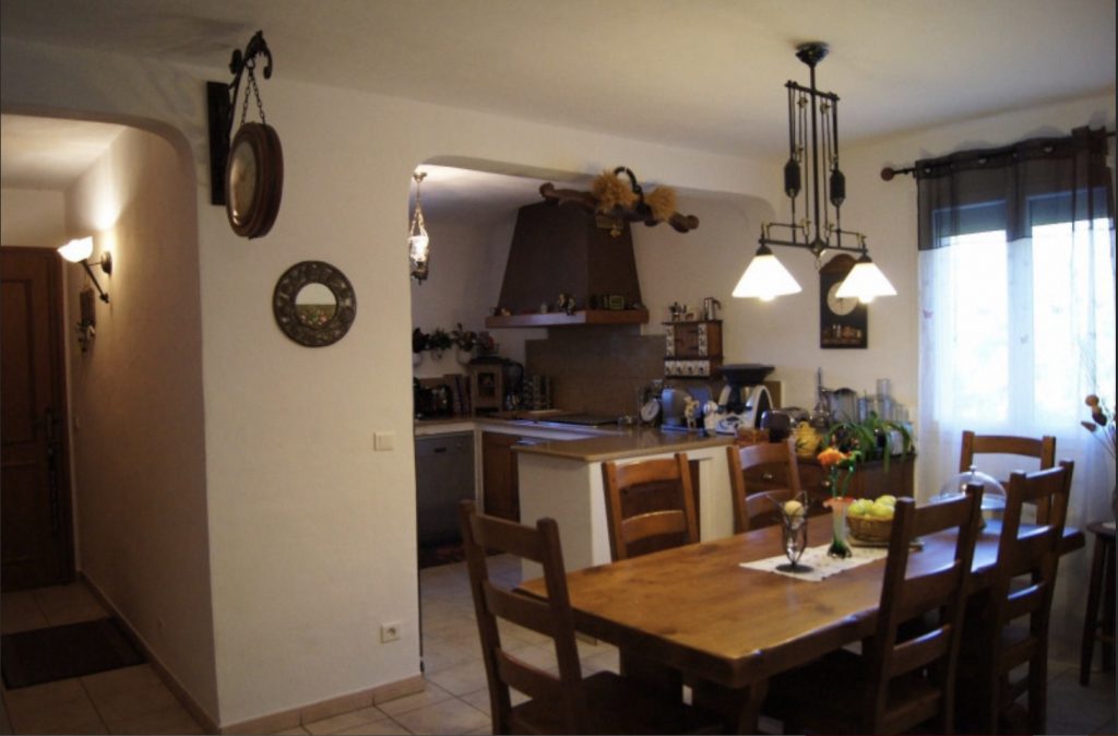 La maison proposait une belle surface avec un grand espace de vie et déjà 4 chambres et 2 pièces d’eau, mais les espaces étaient tous très cloisonnés, la luminosité manquait et la décoration très désuète. La maison possède un superbe extérieur mais ne possédait pas de terrasse et il fallait descendre un escalier pour accéder à l’extérieur.