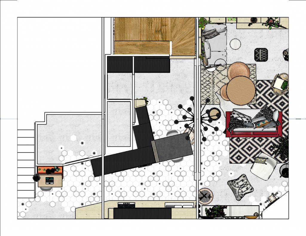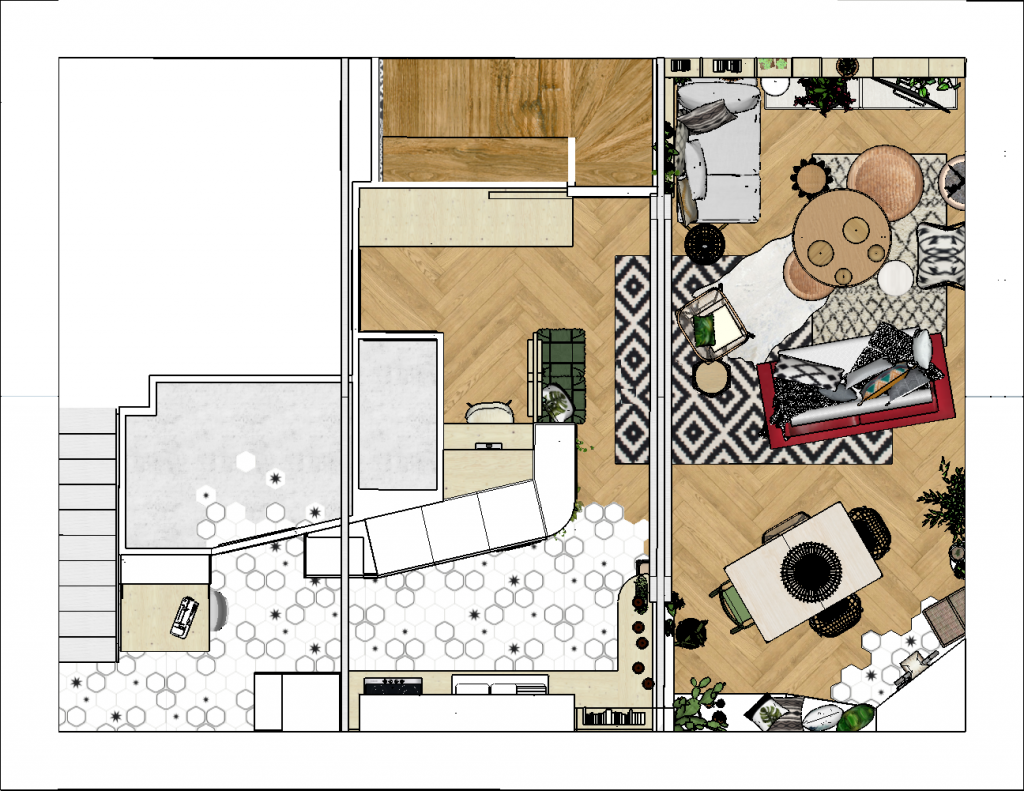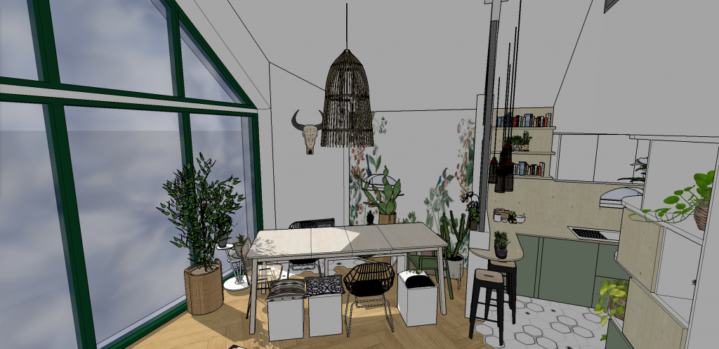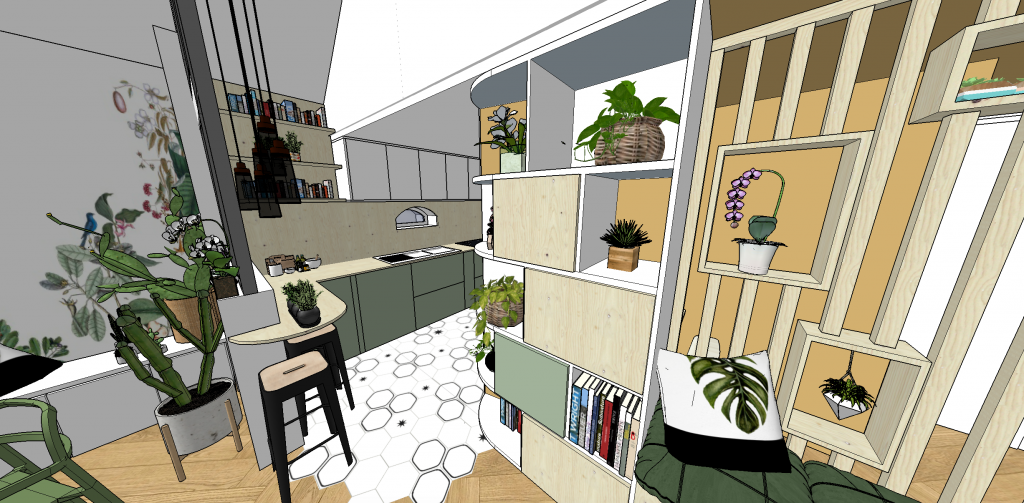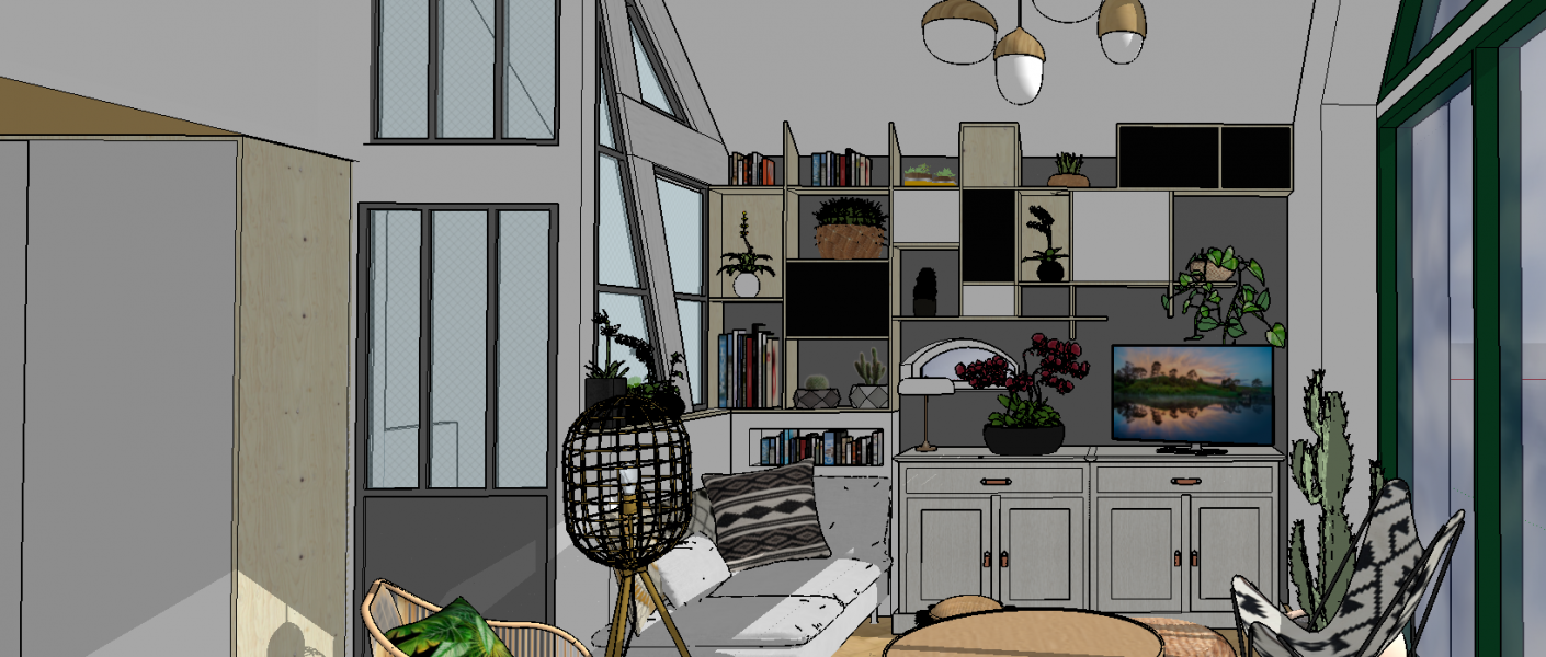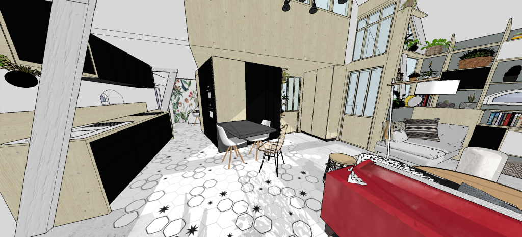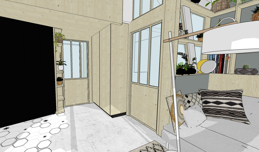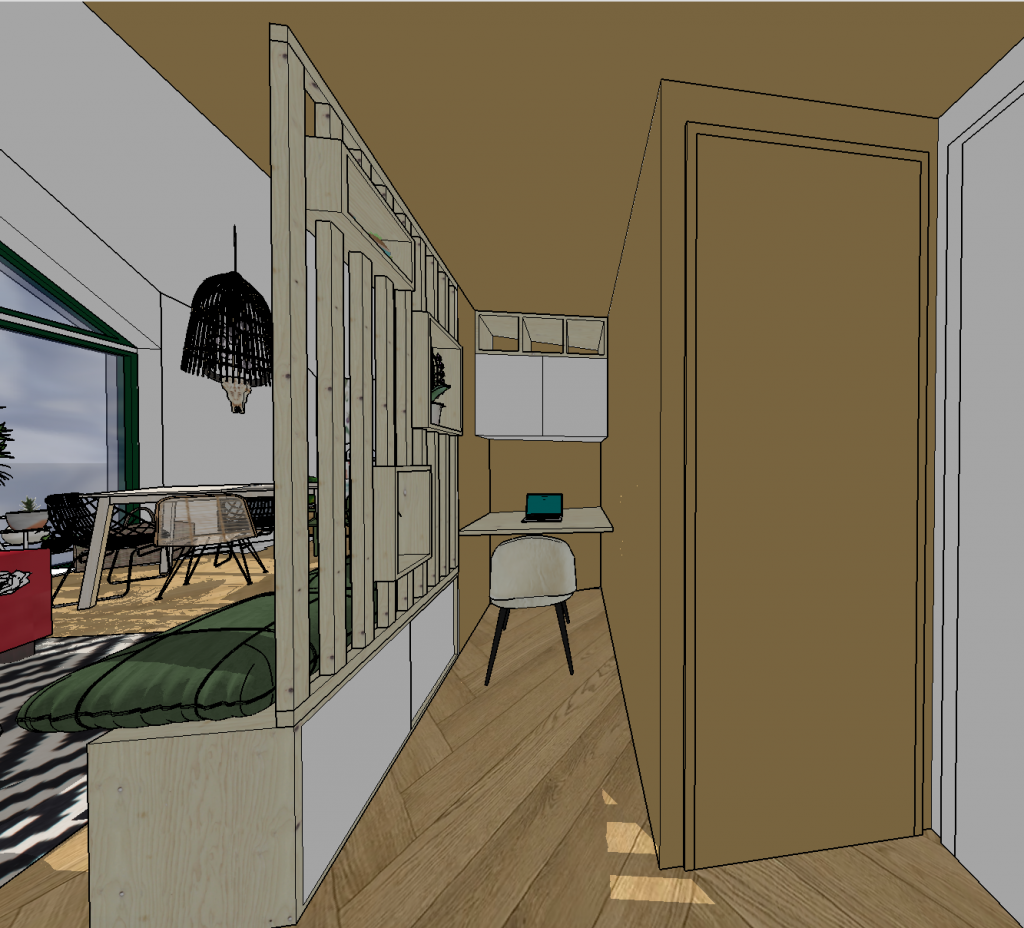 - Mission: Proposer un agencement , des visuels, une liste de prescription matériaux et une liste de prescription mobilier