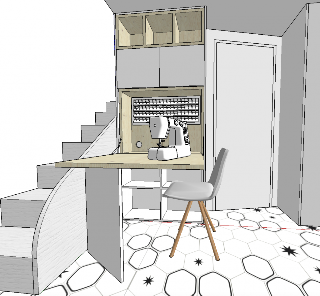 Après prise de cotes et discussion sur les besoins et goûts, nous décidons avec la cliente de travailler sur 2 propositions de conception