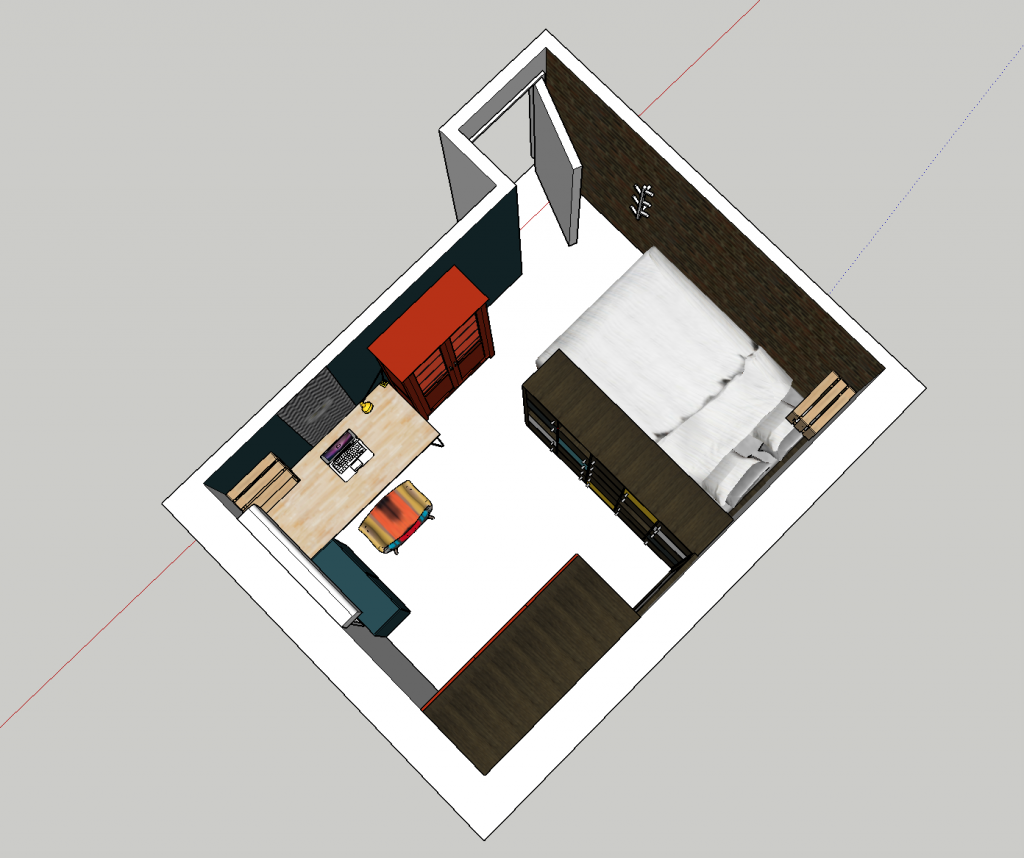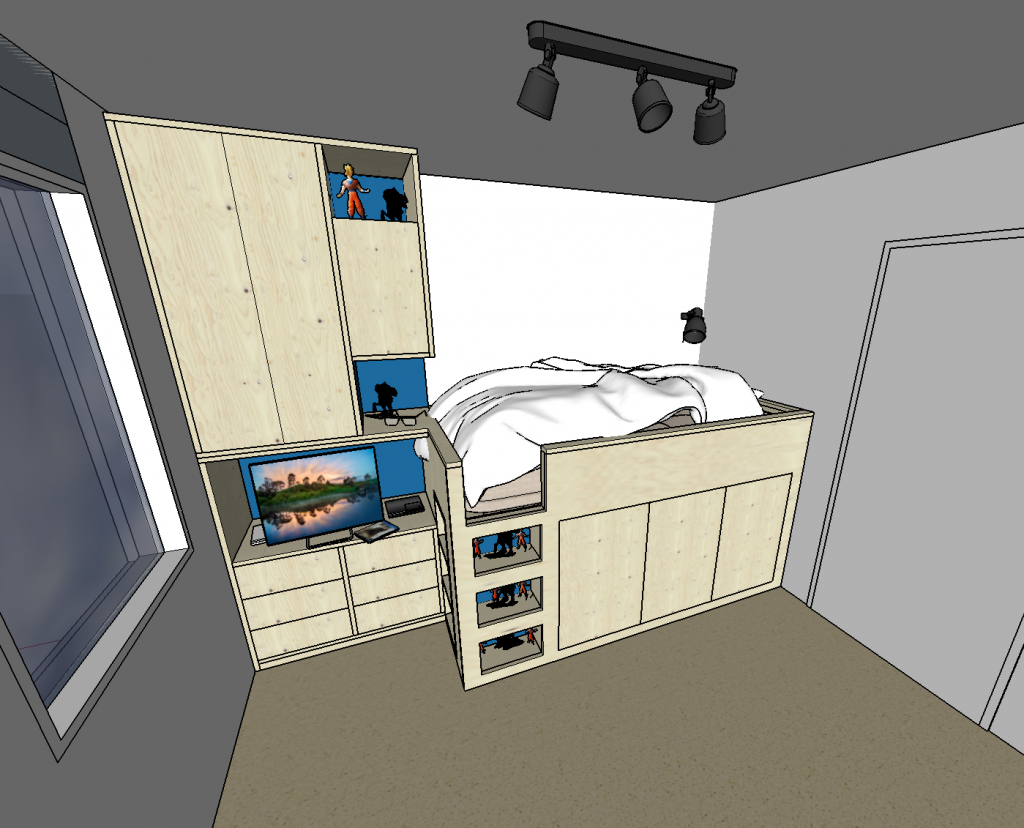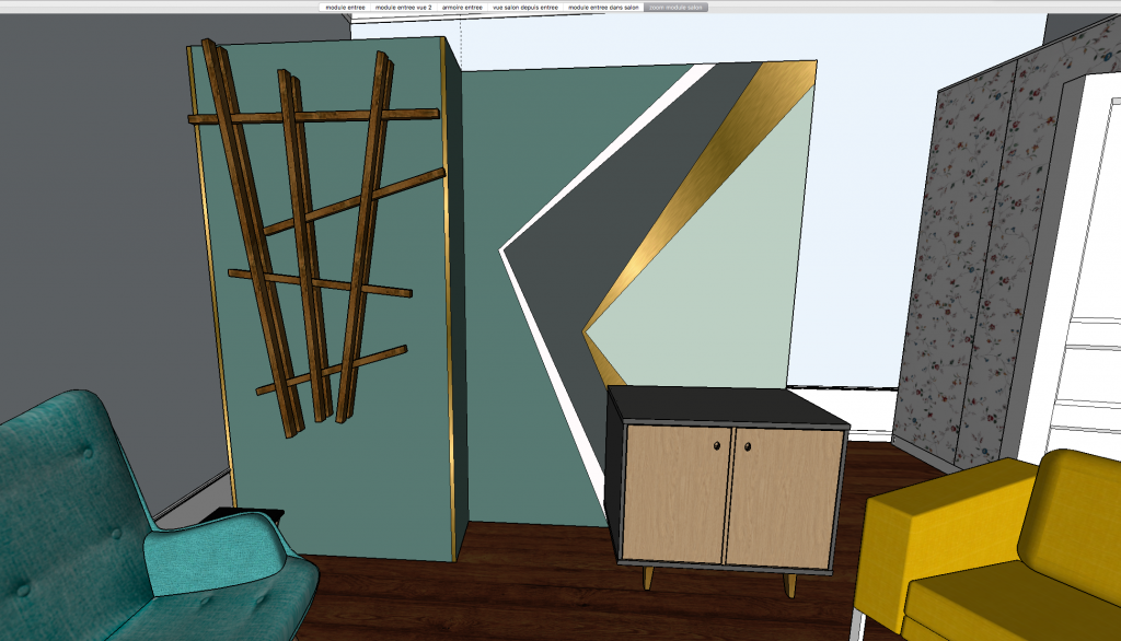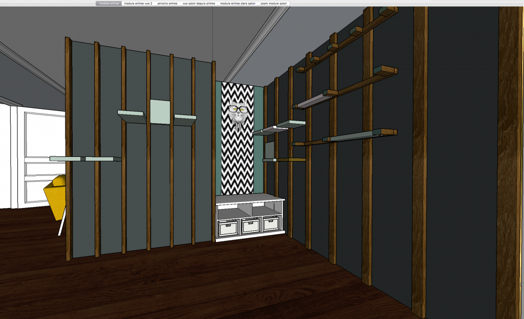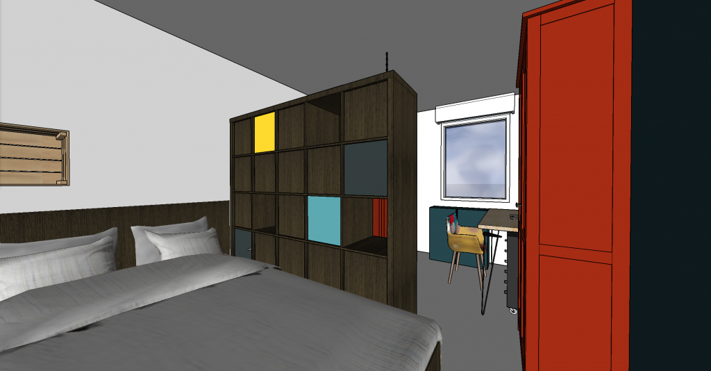 Dans cet appartement, il fallait isoler l’entrée de la pièce de vie, créer une chambre multifonctions pour une étudiante, aménager 2 toutes petites chambres avec le plus de rangement possible